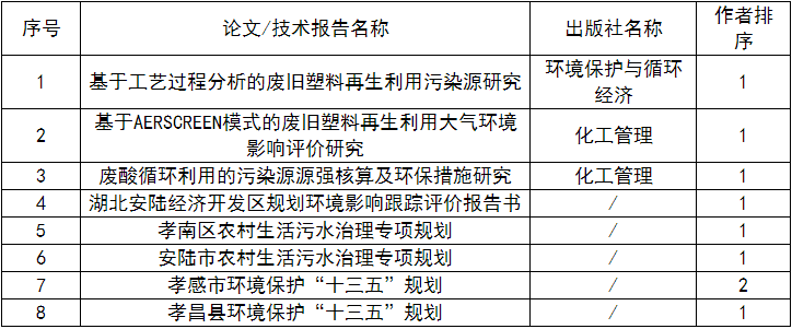表1 謝芳同志環(huán)境保護中級職稱任職成果一覽表